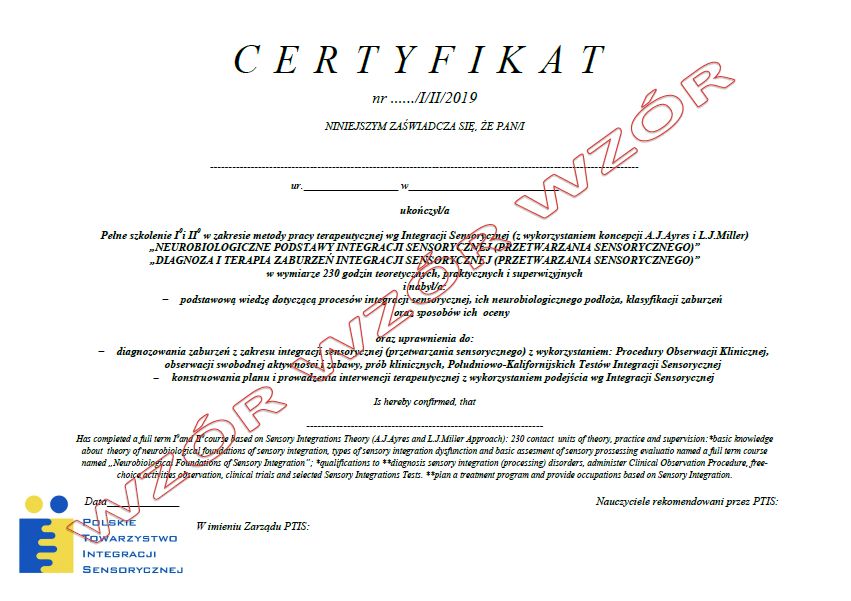 3. Minimum 40 godzin stażu w wybranych gabinetach prowadzących terapię metodą integracji sensorycznej